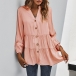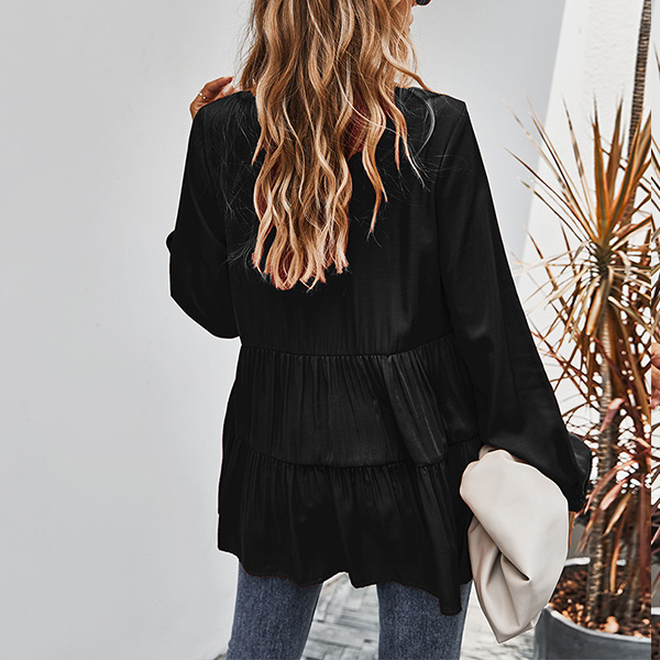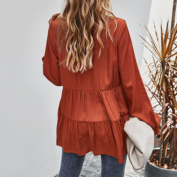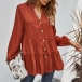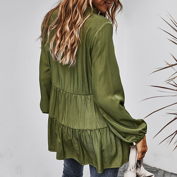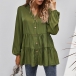 Fashion Solid Color Long Sleeve V-neck Blouse