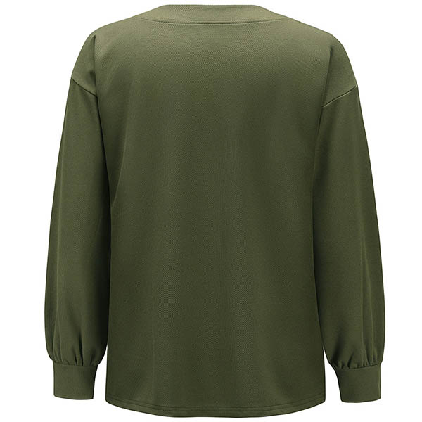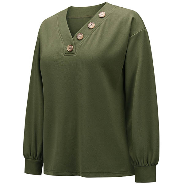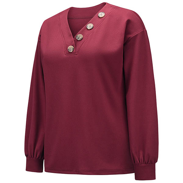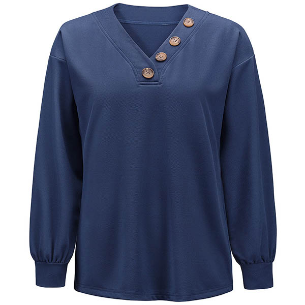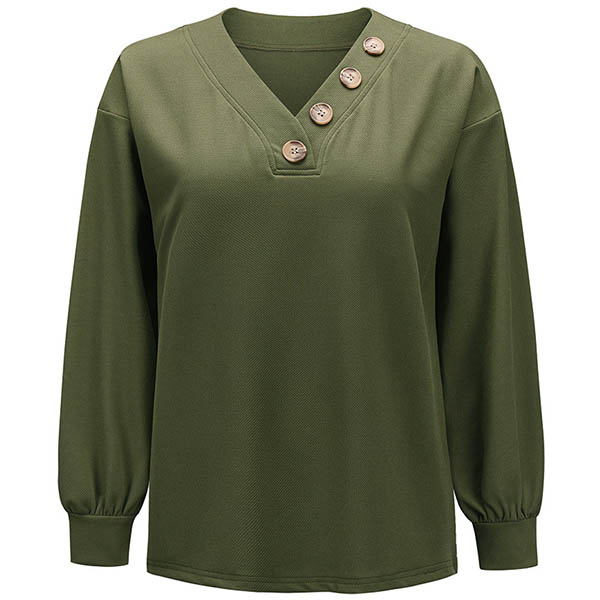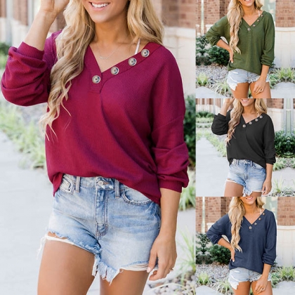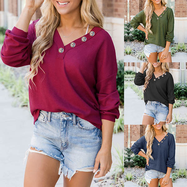 Fashion Solid Color Long Sleeve V-neck Button T-shirt