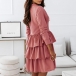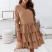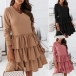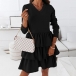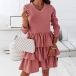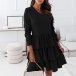 Fashion Solid Color Long Sleeve V-neck Cake Hem Dress