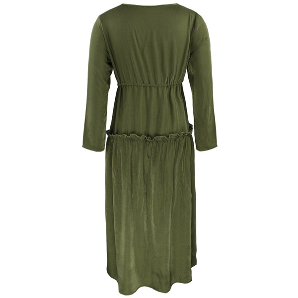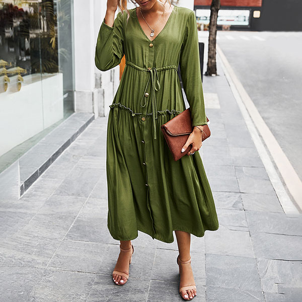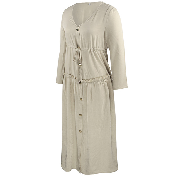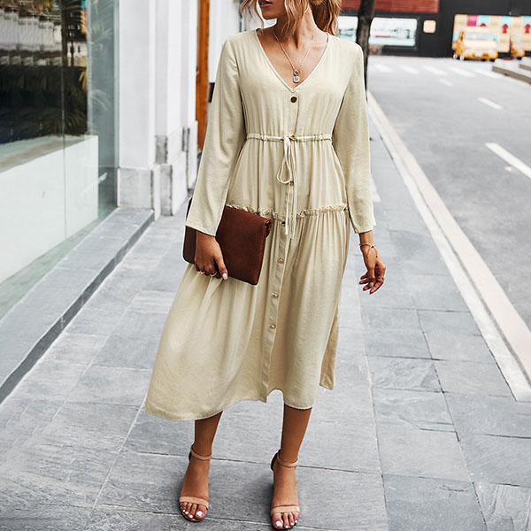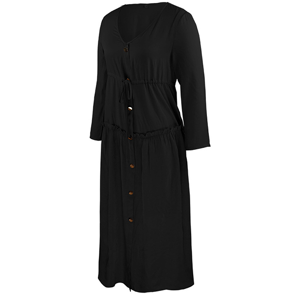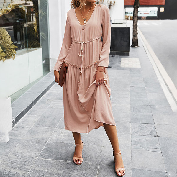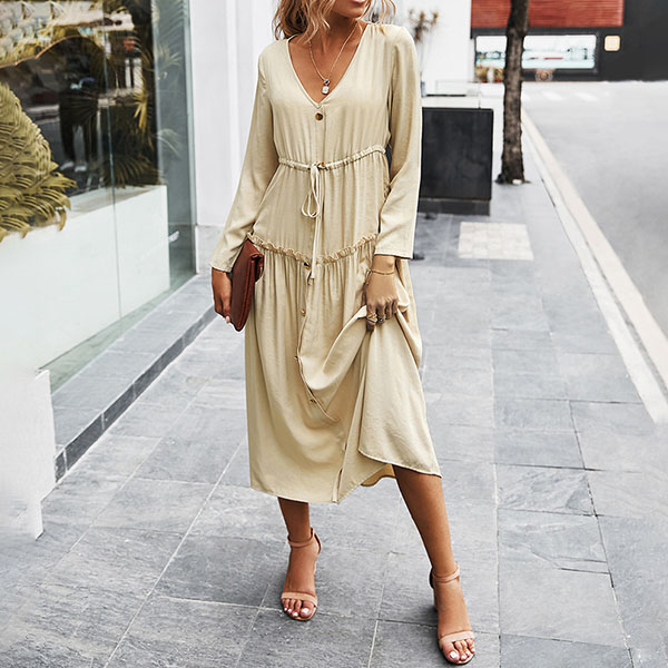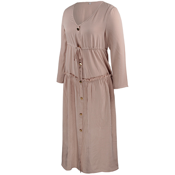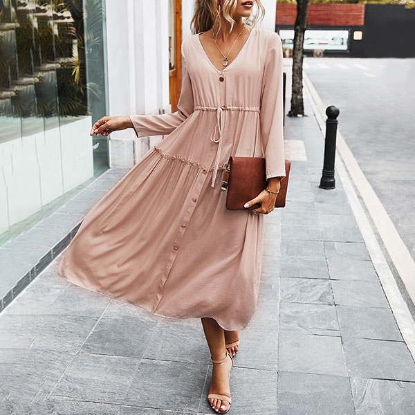 If you're yearning for instant style elevators to call your own, look no further than this dress. Solid color tone design makes this piece look simple,stylish yet generous. Finished with long sleeve,v-neck and a maxi length,this dress knows how to give you a cozy yet stylish style.