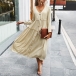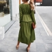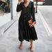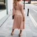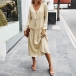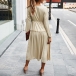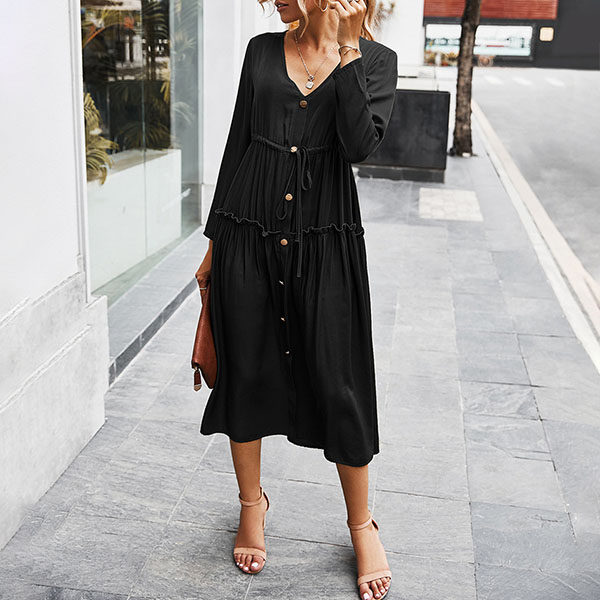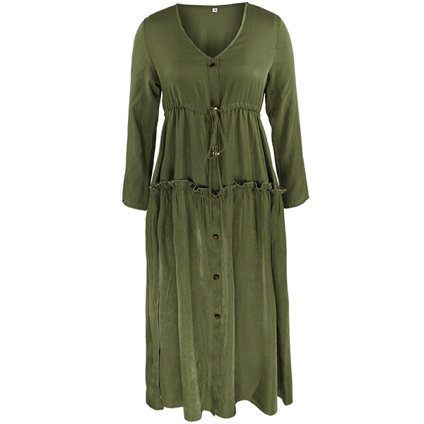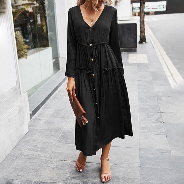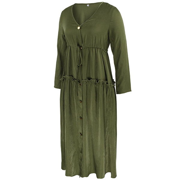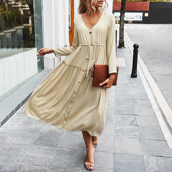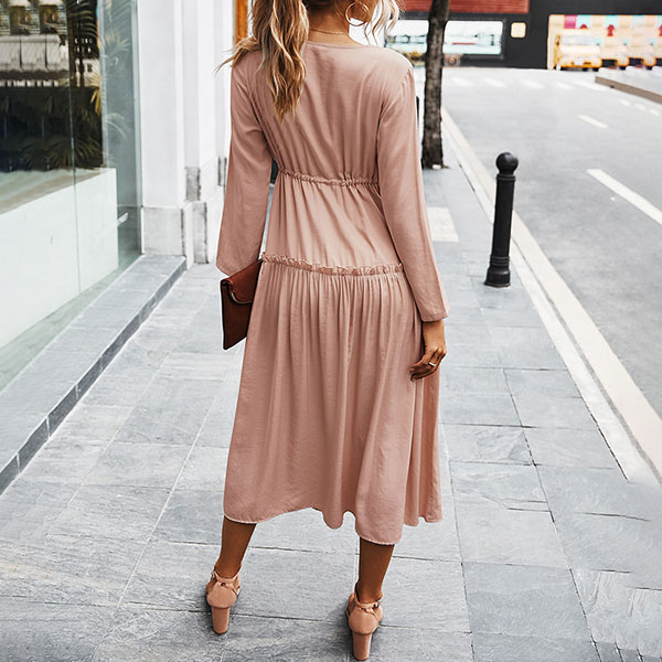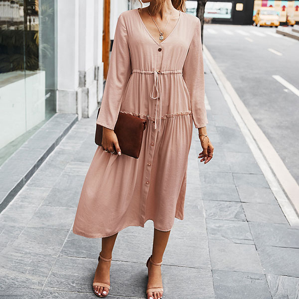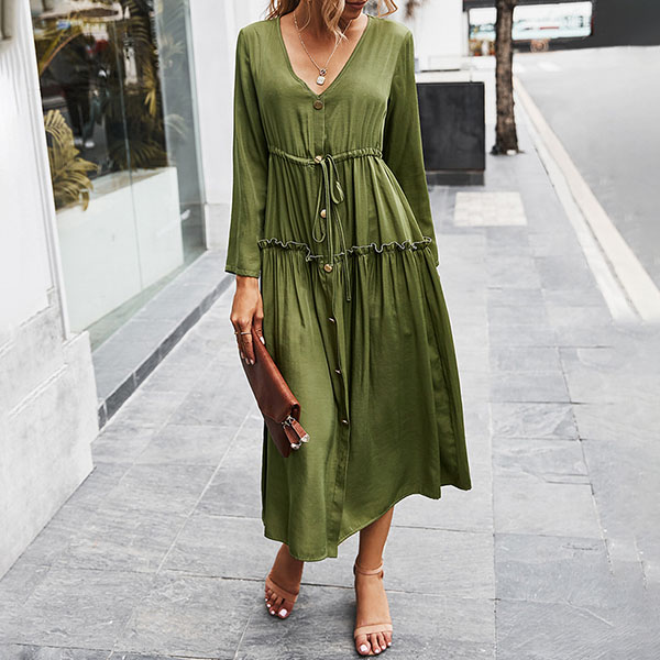 If you're yearning for instant style elevators to call your own, look no further than this dress. Solid color tone design makes this piece look simple,stylish yet generous. Finished with long sleeve,v-neck and a maxi length,this dress knows how to give you a cozy yet stylish style.