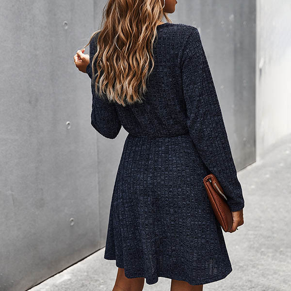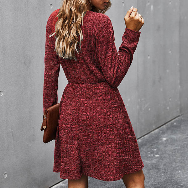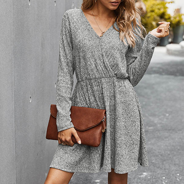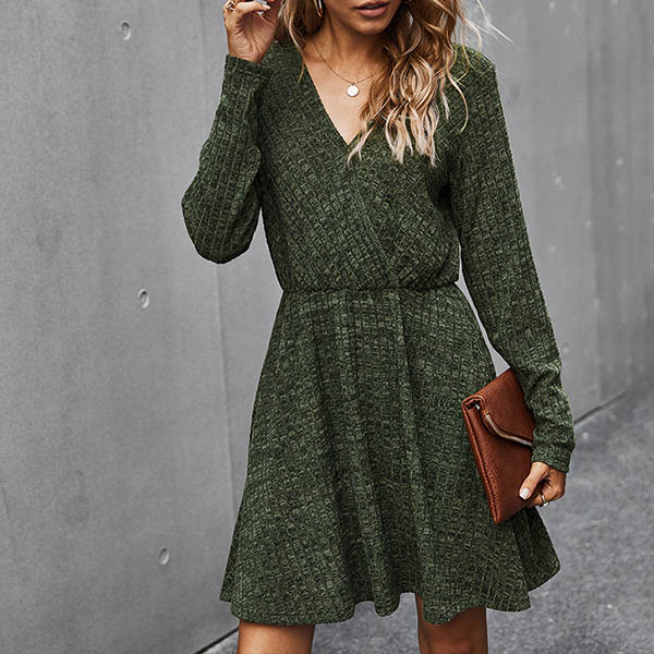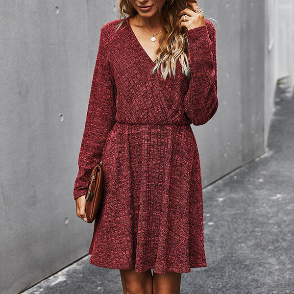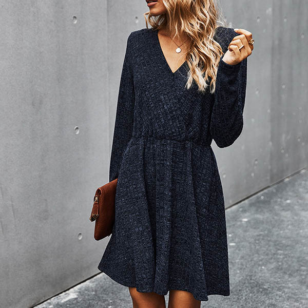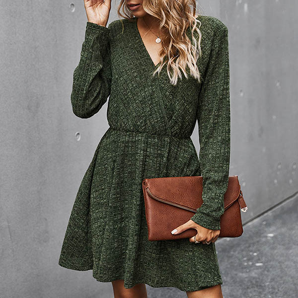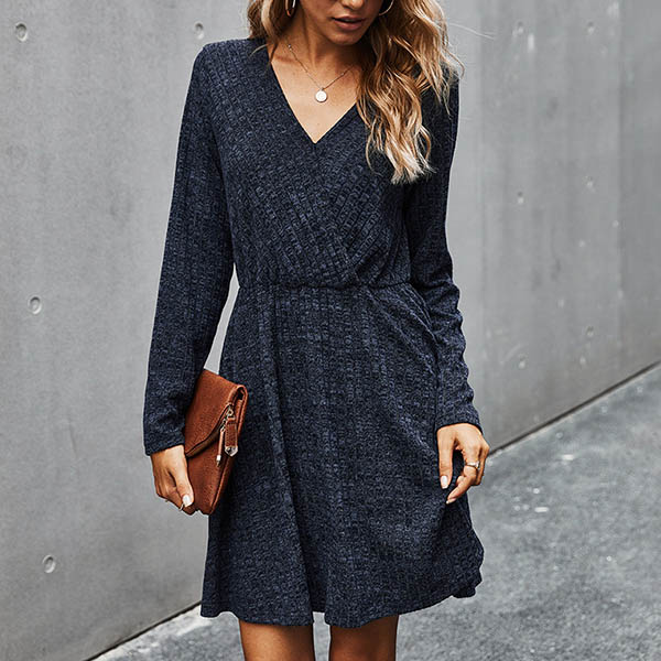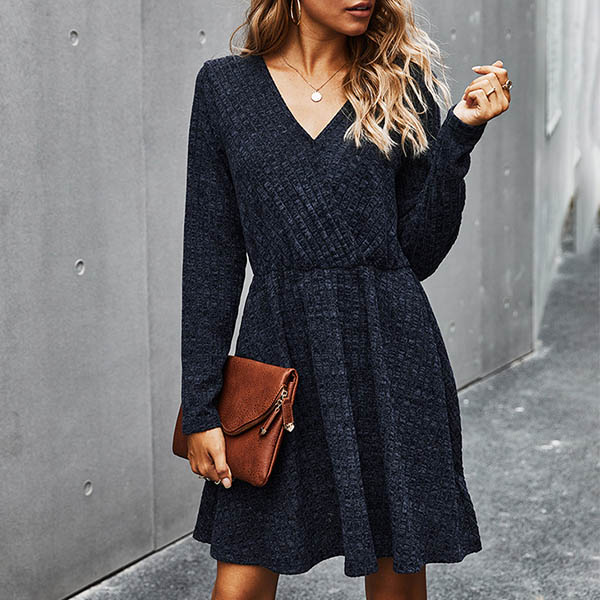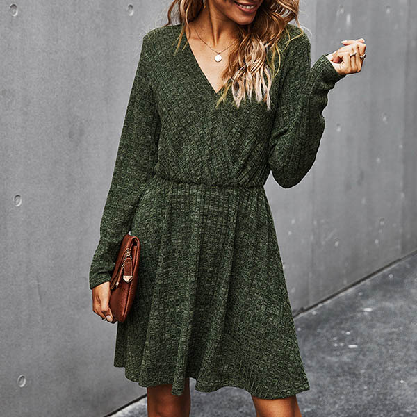 When you don't know what to wear for your daily out,you can just make your eyes focused on this dress. Solid color style,finished with long sleeve and v-neck design,this dress can give you a comfortable day. Try to match with your favourite heels for a beautiful look.