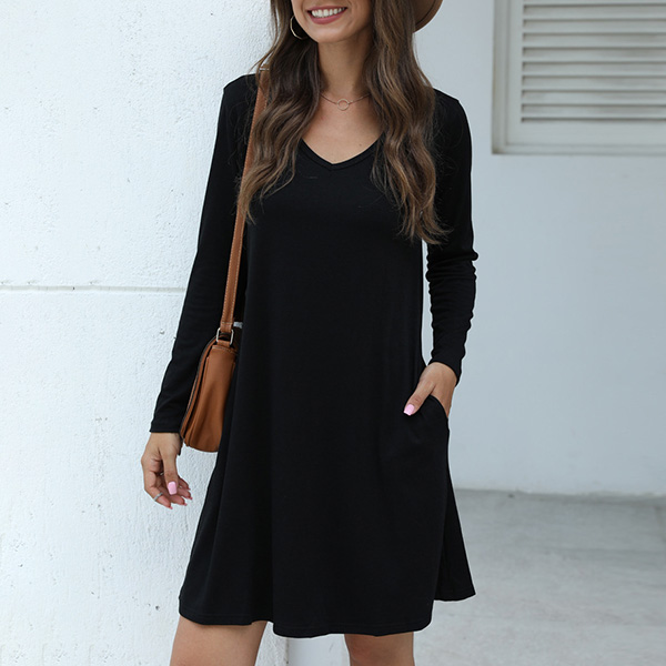 Like simple style piece? Then make your eyes focused on this dress! It boasts a solid color,finished with long sleeve and v-neck design,this piece bears a simple design style,but it knows how to give you a cozy yet stylish style. Perfect fit for your lazy days and rushed mornings.
