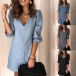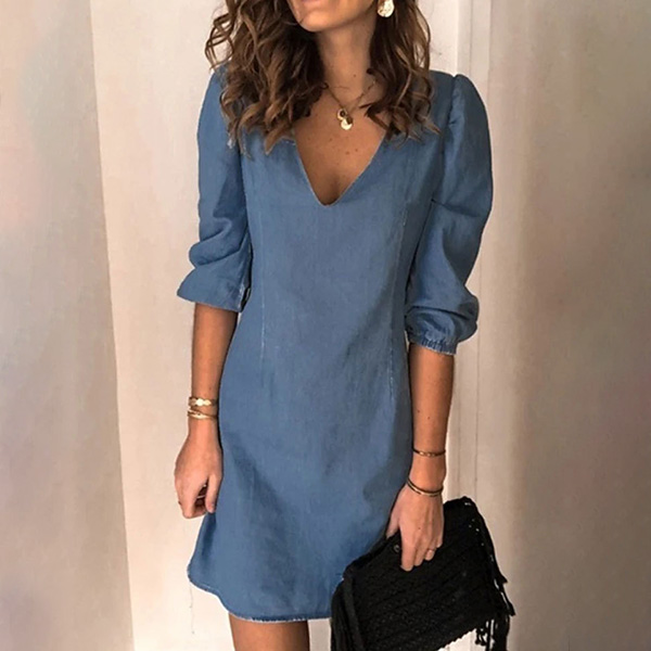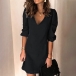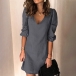 Your wardrobe will feel new and refreshing with this dress! Solid color style,crafted from soft and breathable fabric,this dress can offer you a comfortable day,while the v-neck design can enhance your feminine appeal. From your busy workdays to weekend out,this dress can give you an easy transition.