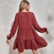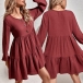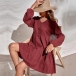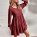 Fashion Solid Color Long Sleeve V-neck Front-buttom High Waist A-line Dress