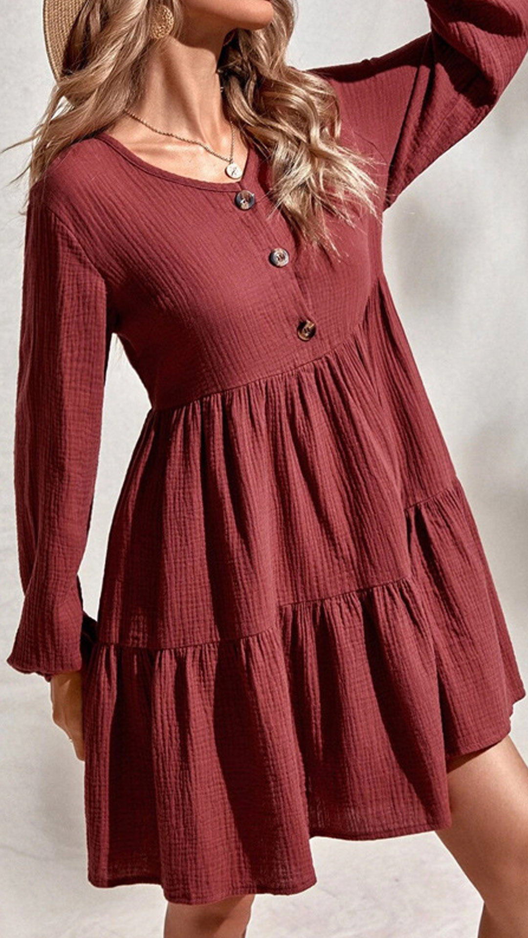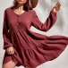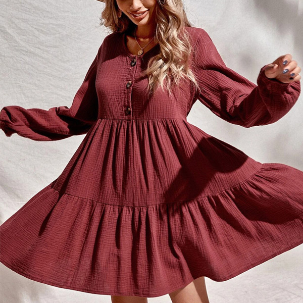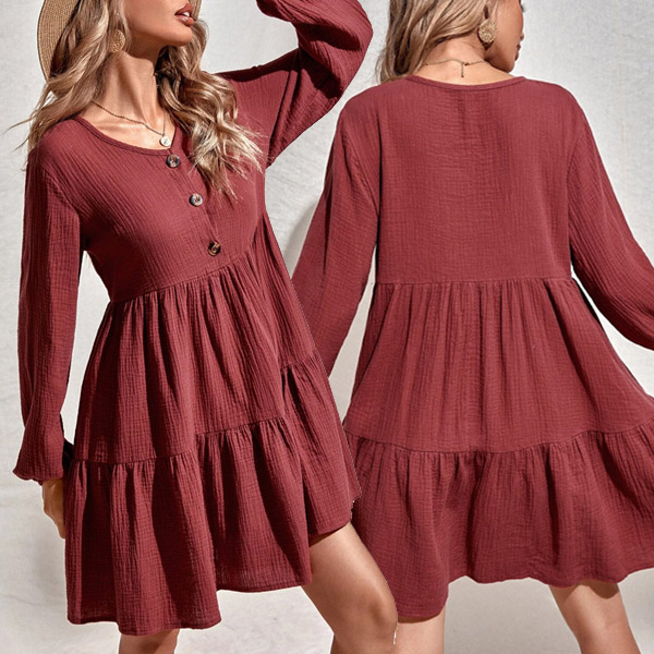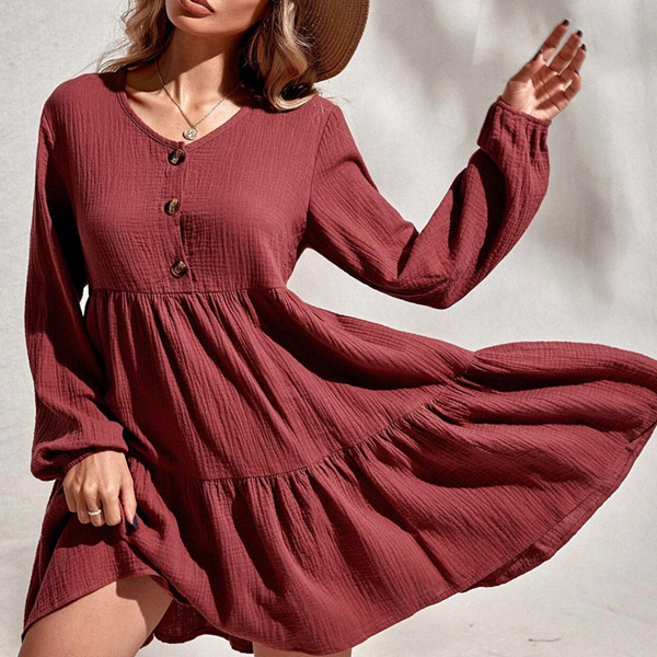 This A-line dress that can be fit for different occasions is worth to have a place in your wardrobe. Crafted in a solid color,the v-neck and front-button details will enrich the design style as well as boost its entire charm. From your daytime out to night dating,this dress can give you an easy transition.