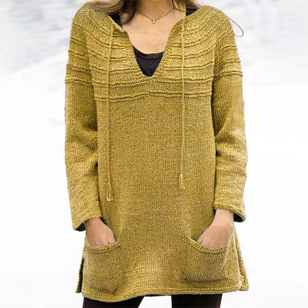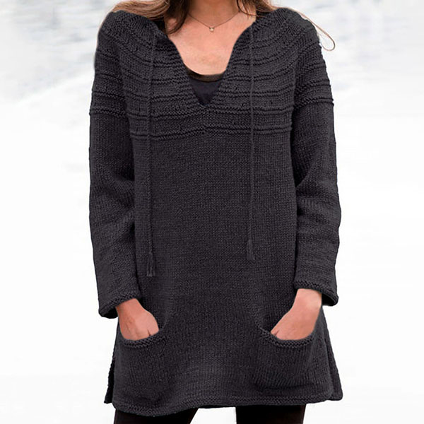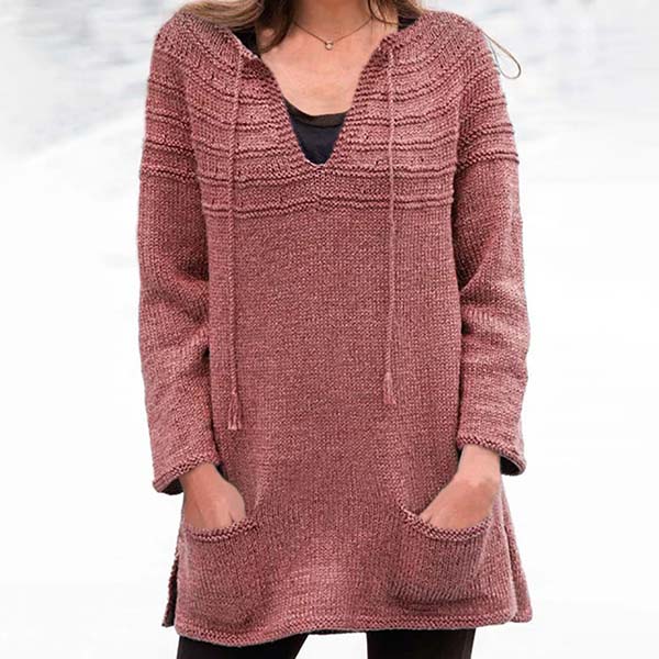 Fashion Solid Color Long Sleeve V-neck Front-pocket Loose Sweater