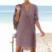Fashion Solid Color Long Sleeve V-neck High-low Hem Dress
