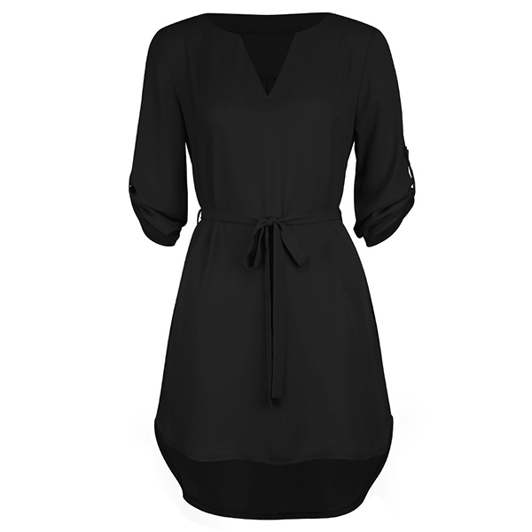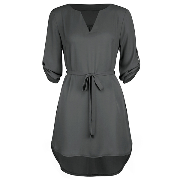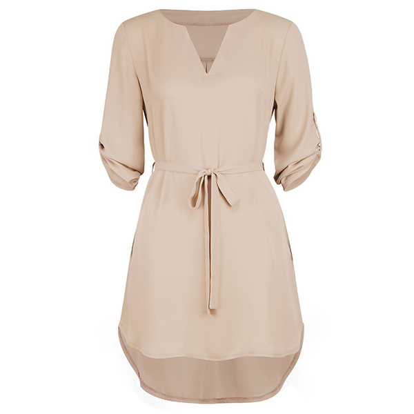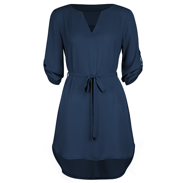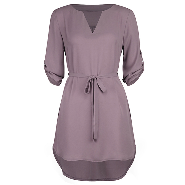 Looking for a proper dress for your afternoon tea time and weekend out? Then make your eyes focused on this dress. Solid color style,with long sleeve,v-neck and a high-low hem design,simple,cozy yet chic. Comes with a waist strap design,which can better highlight your figure. Add one to your wardrobe and it won't let you disappointed!