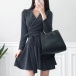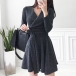 For your spring and autumn days,you can just slip into this knit dress to stay warm and maintain your style. Solid color style,the v-neck design can help enhance your feminine appeal,while the high waist and a-line silhouette design will showcase your slender figure. Like it? Then just invite this piece to your wardrobe.