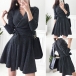 Fashion Solid Color Long Sleeve V-neck High Waist Knit Dress