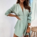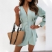 For your busy workdays,this delicate yet stylish shirt dress can be your wise choice. Solid color style,the v-neck design can enhance your feminine appeal,while the high waist design will portray your slender figure. Simply need to match with your favourite heels,then you can look beautiful enough!