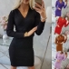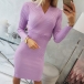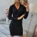 Fashion Solid Color Long Sleeve V-neck High Waist Slim Fit Knit Dress