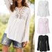Fashion Solid Color Long Sleeve V-neck Hollow Out Shirt