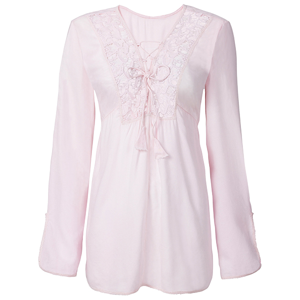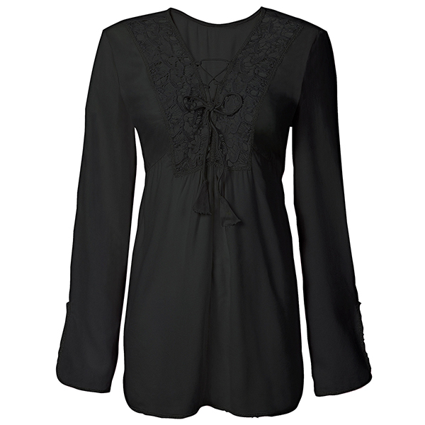 This blouse boasts a solid color,with long sleeve and v-neck design,this piece can ensure you a comfortable day with its soft and breathable fabric. Moreover,the hollow out details will further enhance its charm. You can match with your favourite pants for a fashionable daily style.