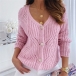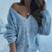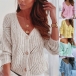 Fashion Solid Color Long Sleeve V-neck Hollow Out Knit Cardigan