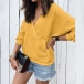 For a simple,casual and relaxed daily style,you can have a try this sweatshirt. Solid color tone design makes it look simple yet generous,while the v-neck design will lend you a dash of feminine vibes. Meanwhile,its soft and breathable fabric can give you a comfortable day. Enrich your casual wardrobe ensemble with this little item.