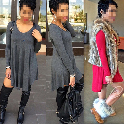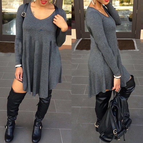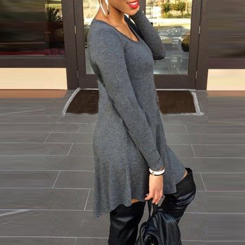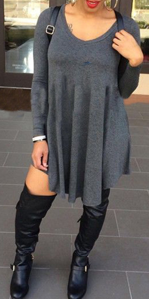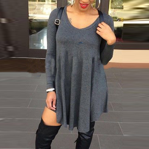 just as comfy as it is chic. Solid color style,with long sleeve,v-neck and irregular hem design.
