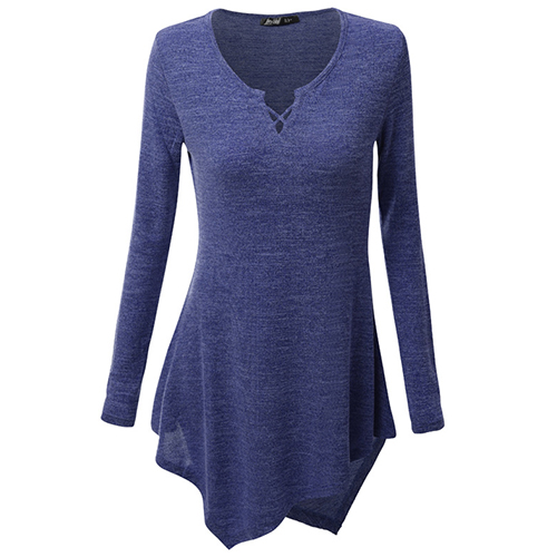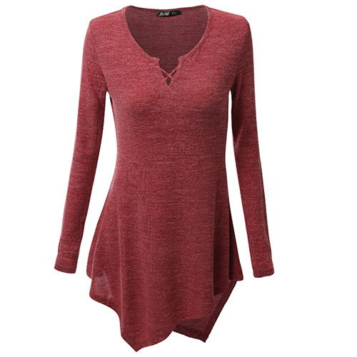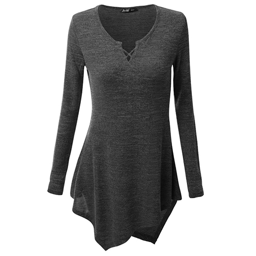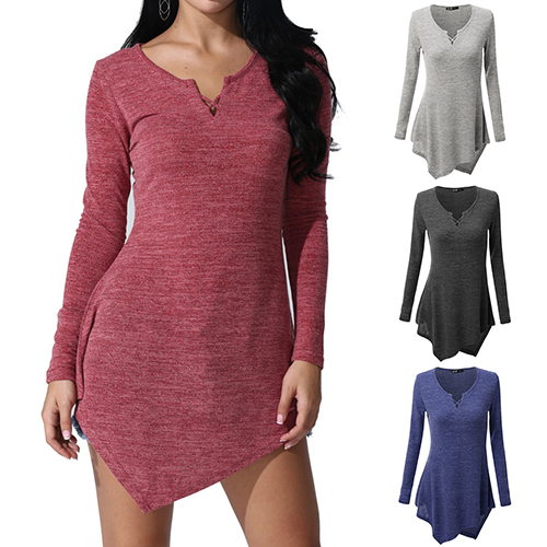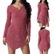 with long sleeve,v-neck and an irregular hem,this dress is a perfect combination of casual,cozy and stylish elements.