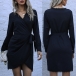 Fashion Solid Color Long Sleeve V-neck Irregular Hem Slim Fit Dress