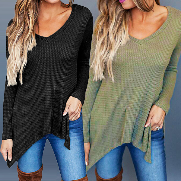 When it comes to a cozy yet stylish style,you can trust in this top. Solid color style,outfitted with long sleeve,v-neck and