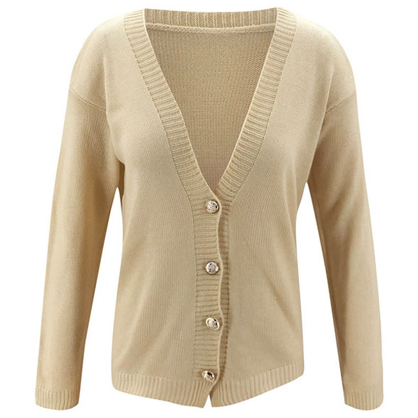 Fashion Solid Color Long Sleeve V-neck Knit Cardigan