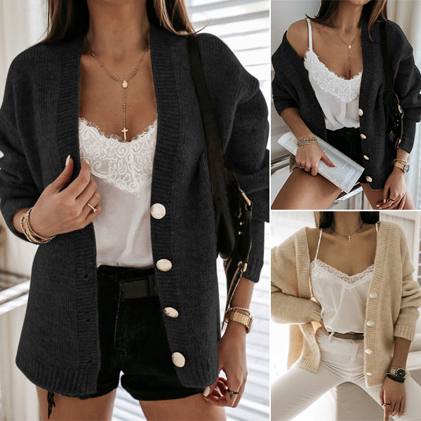 When the days get a little cold,this knit cardigan can give you a perfect transition. Solid color style,finished with long sleeve,v-neck and front-button details,this piece not only can keep you warm and comfy,but also can be matched with different style outfits.