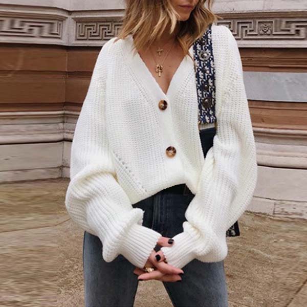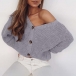 Fashion Solid Color Long Sleeve V-neck Knit Cardigan