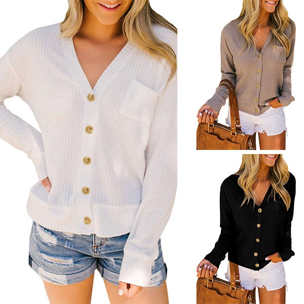It comes with a solid color,with long sleeve,v-neck and single-breasted design,this piece can