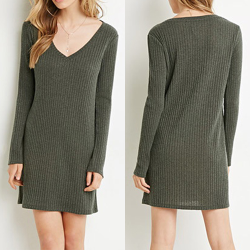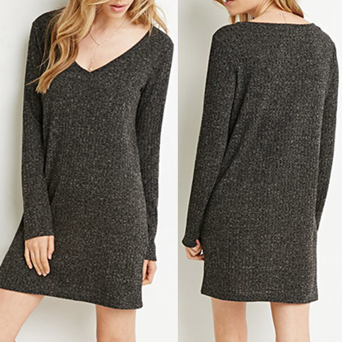 The proof is in the details: a sleek silhouette with long sleeves and v-neckline.