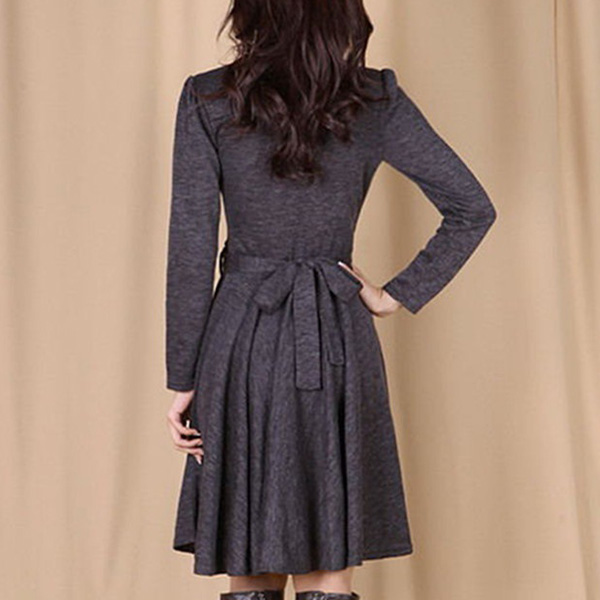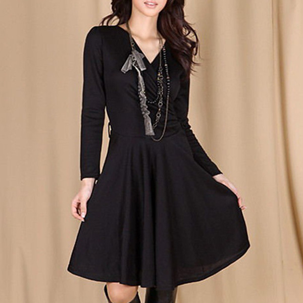 When the days get a little cold,this cozy yet stylish long sleeves dress is worth to be your wardrobe staple. Solid color style,the v-neck design can enhance your charming feminine appeal. Comes with a waist strap design,this dress can better highlight your slender figure. Add this dress to your wardrobe and it won't let you down!