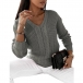 Fashion Solid Color Long Sleeve V-neck Knit Pullover Sweater