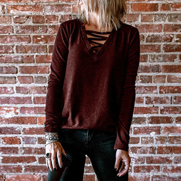 Fashion Solid Color Long Sleeve V-neck Knit Top