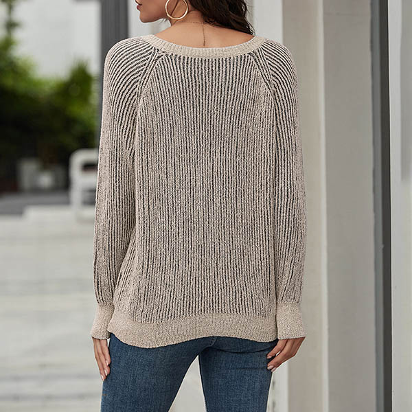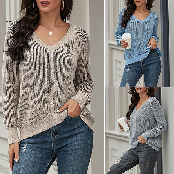 Fashion Solid Color Long Sleeve V-neck Knit Top