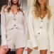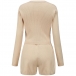 Fashion Solid Color Long Sleeve V-neck Knit Top + Shorts Two-piece Set