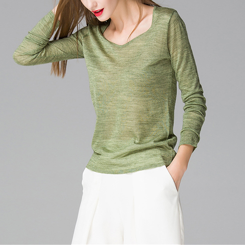 Fashion Solid Color Long Sleeve V-neck Knitted Tops