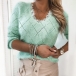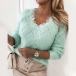 Fashion Solid Color Long Sleeve V-neck Lace Spliced Knit Top