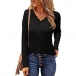 Fashion Solid Color Long Sleeve V-neck Lace Spliced T-shirt