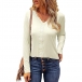 Your wardrobe calls for such a stylish and all-match t-shirt. Solid color tone design makes it look simple yet generous,while the v-neck and lace spliced details will boost its entire charm. Meanwhile,its soft and breathable fabric can give you a comfortable day, Try to match with different style bottoms to achieve for different fashion styles.