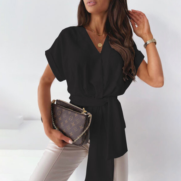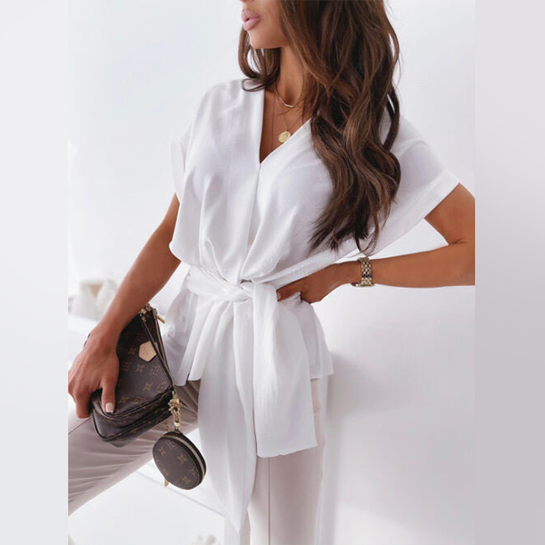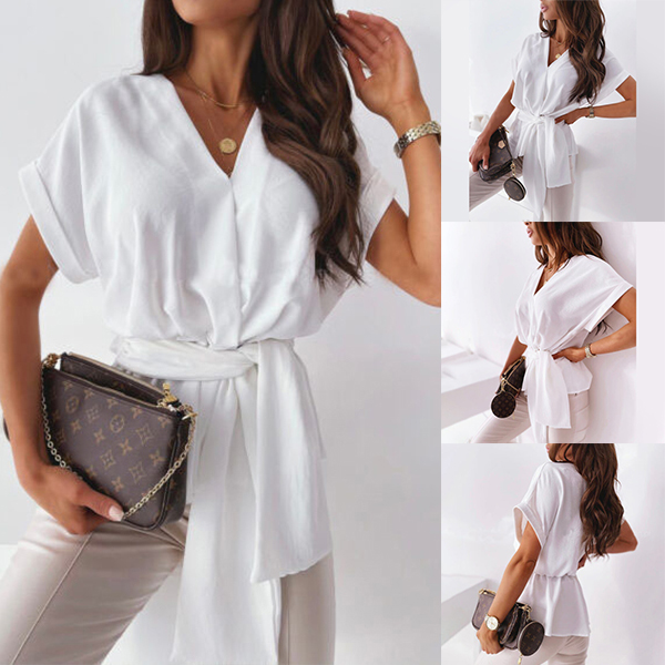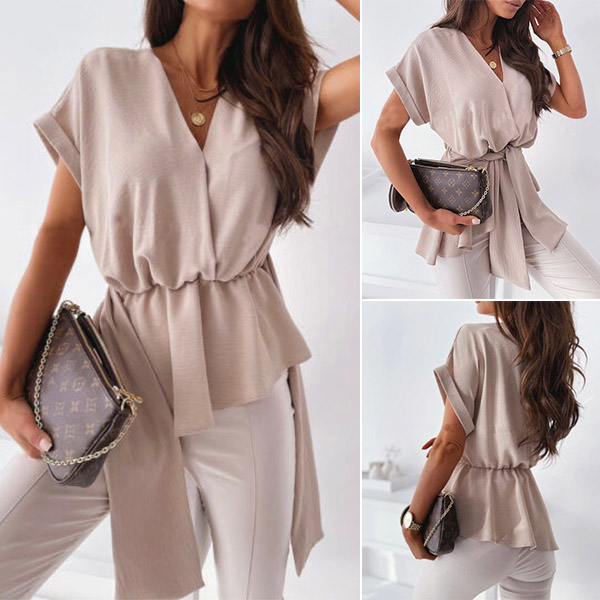 Only need one glance,you would fall in love with this wonderful top. It comes with a solid color,the v-neck design can help enhance your feminine appeal while the lace-up design at the waist part not only can showcase your slender waist,but also can make this piece look more attractive. Attracted? Then don't miss this chance!
