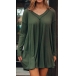 Fashion Solid Color Long Sleeve V-neck Loose Dress