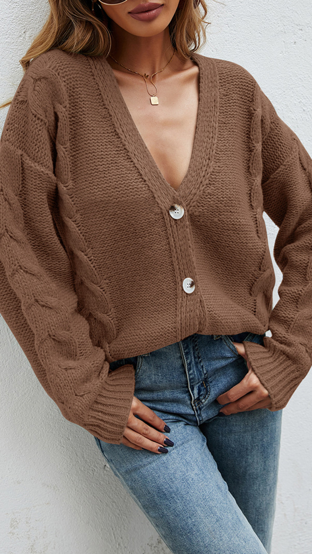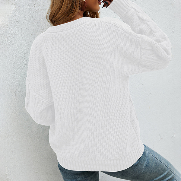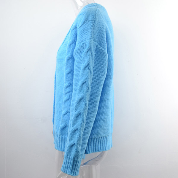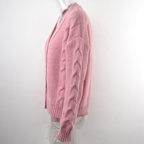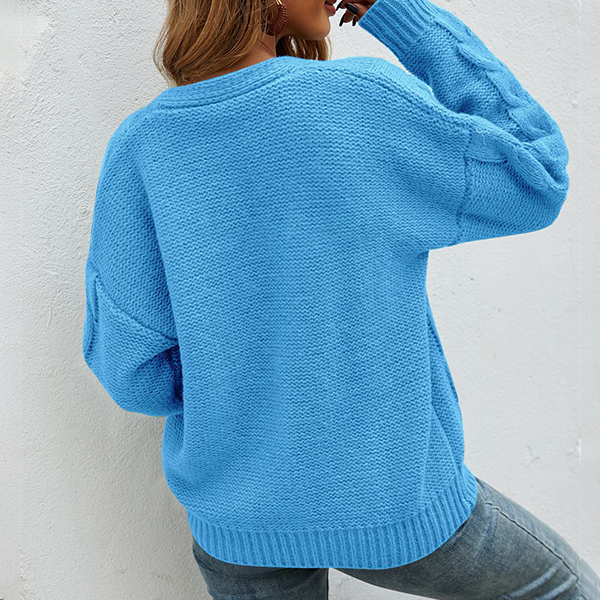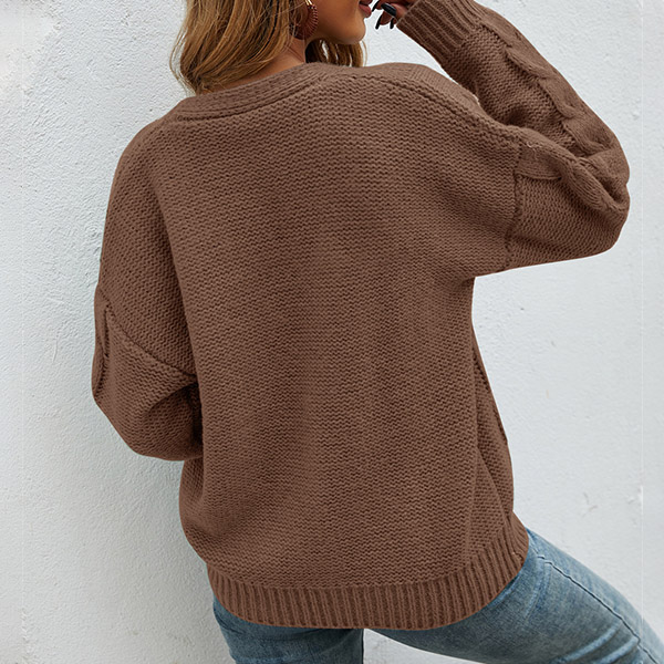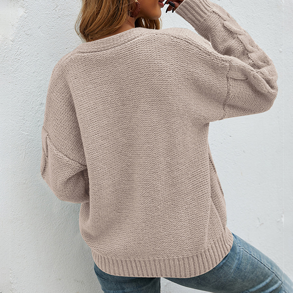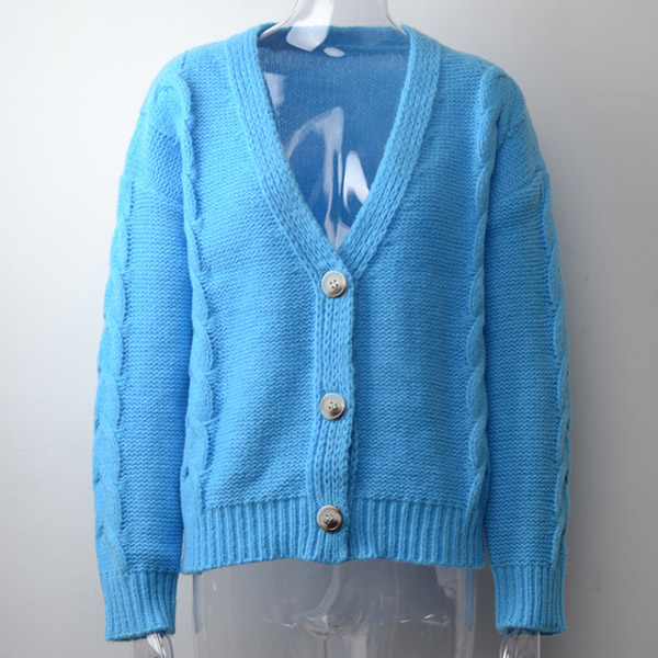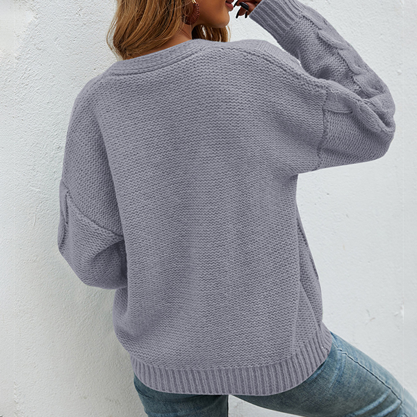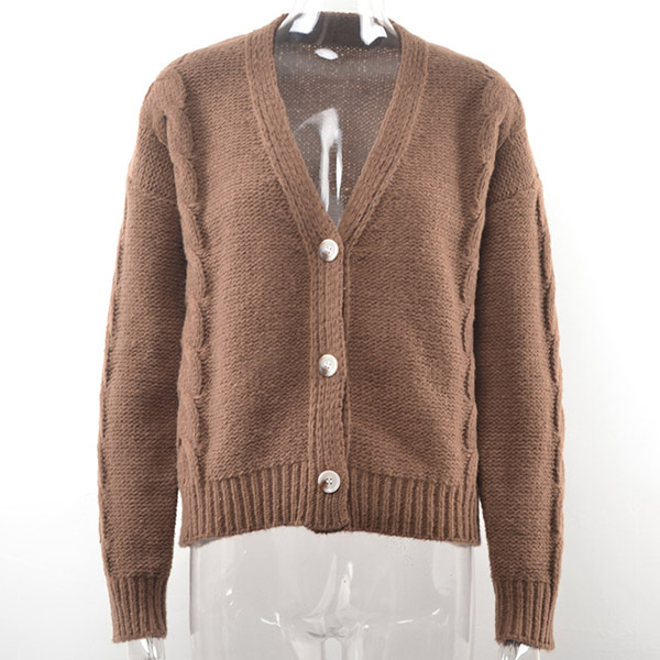 Fashion Solid Color Long Sleeve V-neck Loose Knit Cardigan