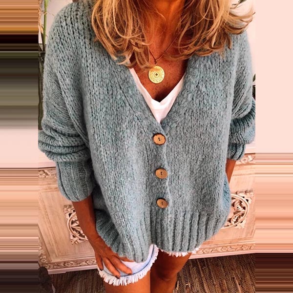 Hey,girls,you can trust in this knit cardigan to give you a perfect transition from the later summer days to the early autumn days. Solid color style,finished with long sleeve,v-neck,front-button and a loose silhouette,this knit cardigan can keep you warm yet stylish.