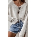 Fashion Solid Color Long Sleeve V-neck Loose Knit Top