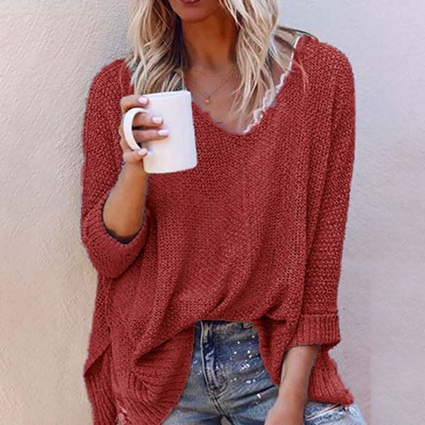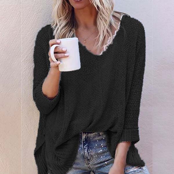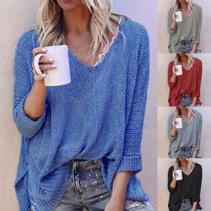 This comforting knit top can give your wardrobe a seasonal update. Solid color style,finished with long sleeve,v-neck and a loose silhouette,simple in design style,but it can offer you a cozy yet stylish style.
