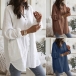 Fashion Solid Color Long Sleeve V-neck Loose Shirt