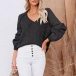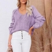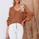 Fashion Solid Color Long Sleeve V-neck Loose Sweater