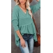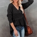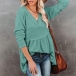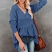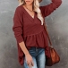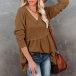Fashion Solid Color Long Sleeve V-neck Loose T-shirt
