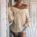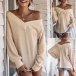 Fashion Solid Color Long Sleeve V-neck Loose T-shirt