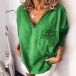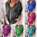 Fashion Solid Color Long Sleeve V-neck Loose T-shirt